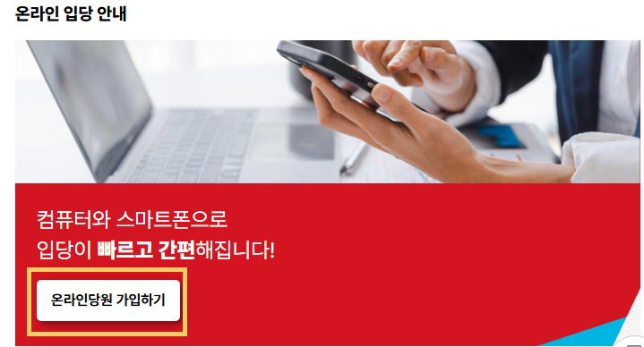 가장 쉽고 빠른 방법은 인터넷을 통한 온라인 국민의힘 당원가입입니다.
