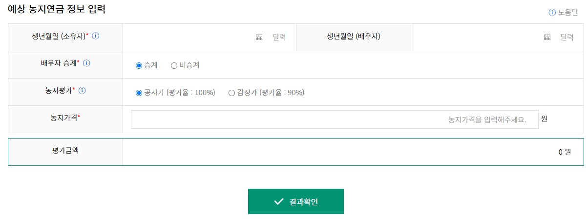 농지연금 예상수령액 자동계산