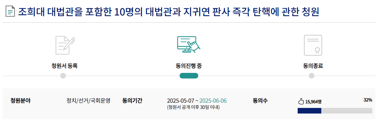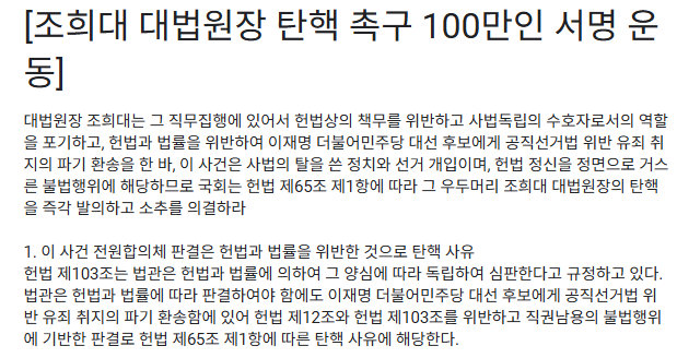 - 조희대 대법원장 탄핵 서명운동은 정의 실현을 위한 국민적 요구입니다.